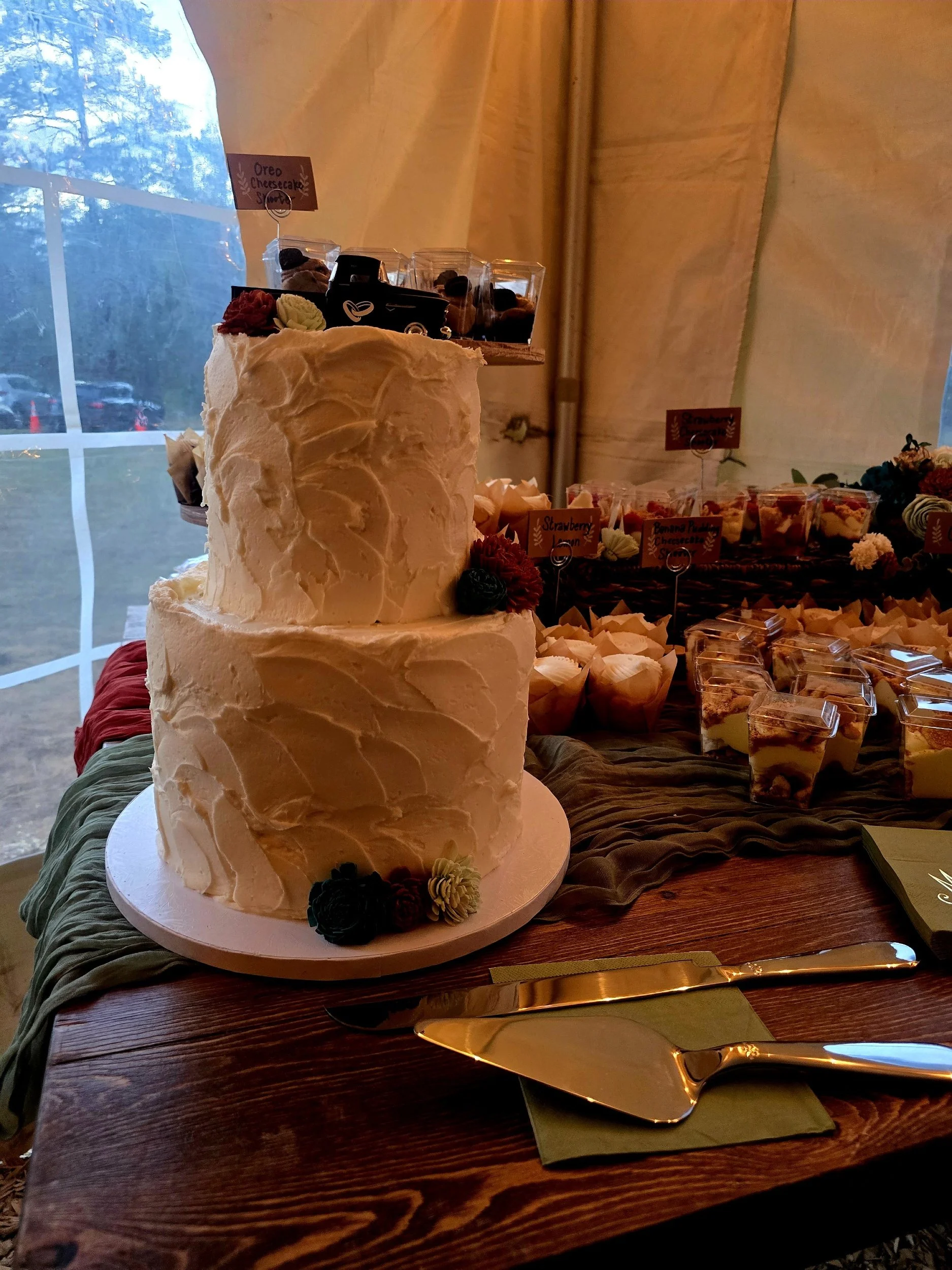 Nestled in the countryside, this charming farm wedding venue blends natural beauty with timeless elegance. Family-owned by Kimberlie and her team, it offers a warm, personal touch. Featuring reclaimed wood, vintage lanterns, and fairy lights, the space complements the pastoral setting. Kimberlie’s hospitality is seen in hand-crafted signs and and included faux floral arrangements. HK Events recommends this venue for rustic charm and heartfelt service!